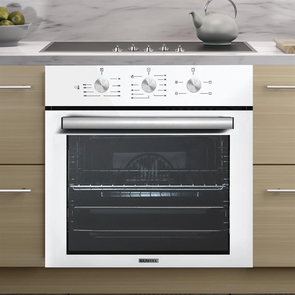 Kumtel Kristal Beyaz Cam Ankastre Fırın B66 – S2 (Mt) 3 Pro 3 Düğme(Plus) Cam Tel Raf Beyaz)