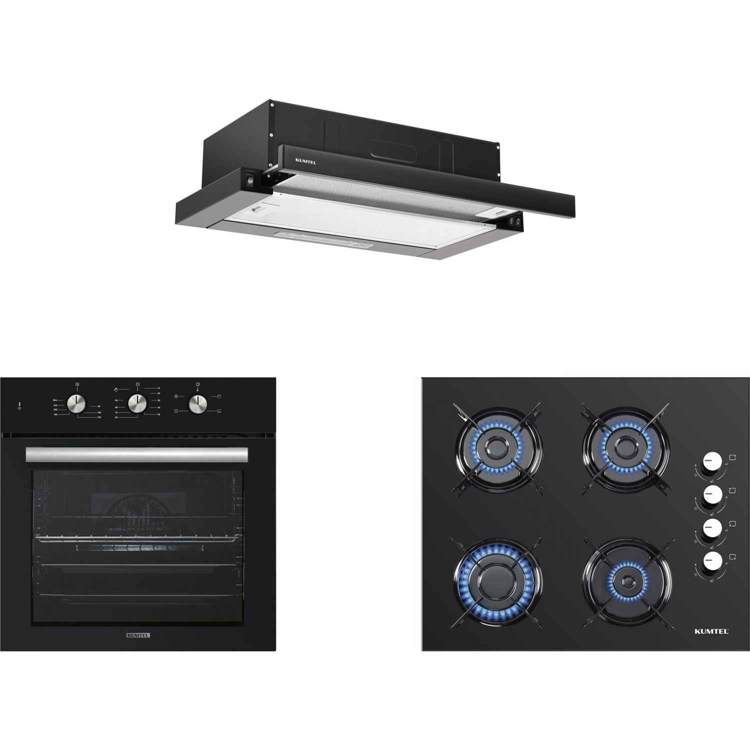 Kumtel Siyah Aspiratörlü Kristal Ankastre Set (B66 – SF2 (MT) + KO-40TAHDF + DS6-905S)