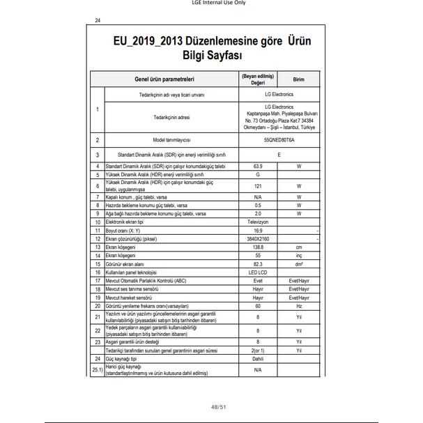 •Genel olarak memnun kaldım alacak kişilere tavsiyem bütçeniz var ise kesinlikle 65 inç ve üstünü alın .