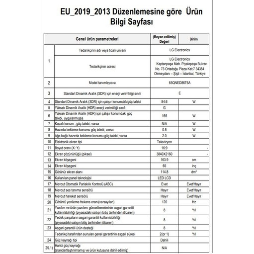 LG 65QNED86T 65″ 165 Ekran Uydu Alıcılı 4K Ultra HD Smart LED TV için 5 değerlendirme