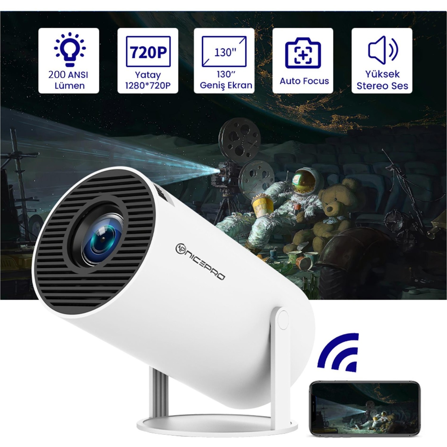 Npo NP315PLUS 4K ANDROID11 Bt5.0 Wifi6 200ANSI Lümen Ios/android Taşınabilir Akıllı LED Projeksiyon