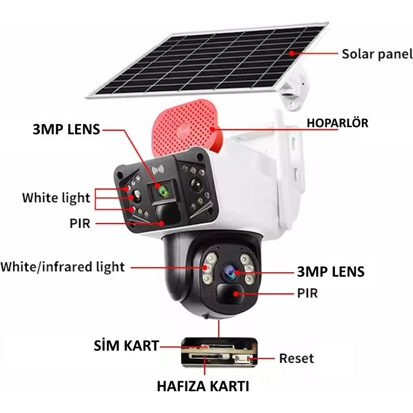 O-kam 3915 4g 6mp Dual Lens Güneş Panelli Solar Sirenli Güvenlik Kamerası