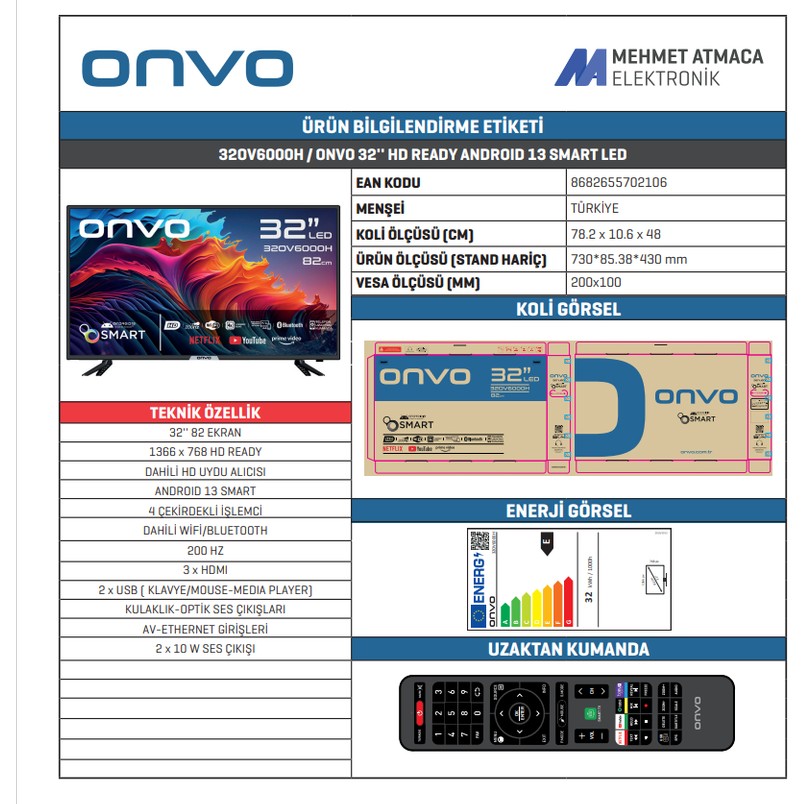 Onvo 32OV6000H 32″ 81 Ekran Uydu Alıcılı HD Ready Smart LED TV
