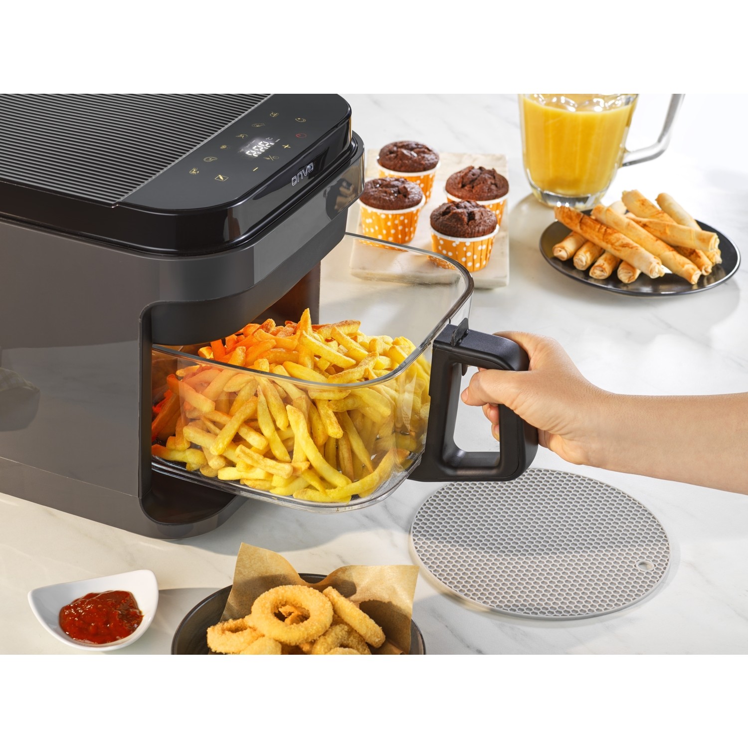 Gelir gelmez yıkadım patates kızarttım bişeyler ısıttım ilk aldığım airfryer ile aynı pişirme kalitesi aynı.. İlki teflon kaplama olduğu için çok deforme oldu sağlıklı olması için bu sefer cam tercih ettim.. Çok memnunum, yalnız cam ile hazne arasında çok ufak bir boşluk oluyor çalışırken ordan kokuyu dışarı verirmi bilemedim, balık köfte gibi kokan bişeyler yapıp denemek lazım. . Bir de TÜRK MALI olması beni ayrıca cezbetti.. Çok da şık duruyor tavsiye ederim ☺