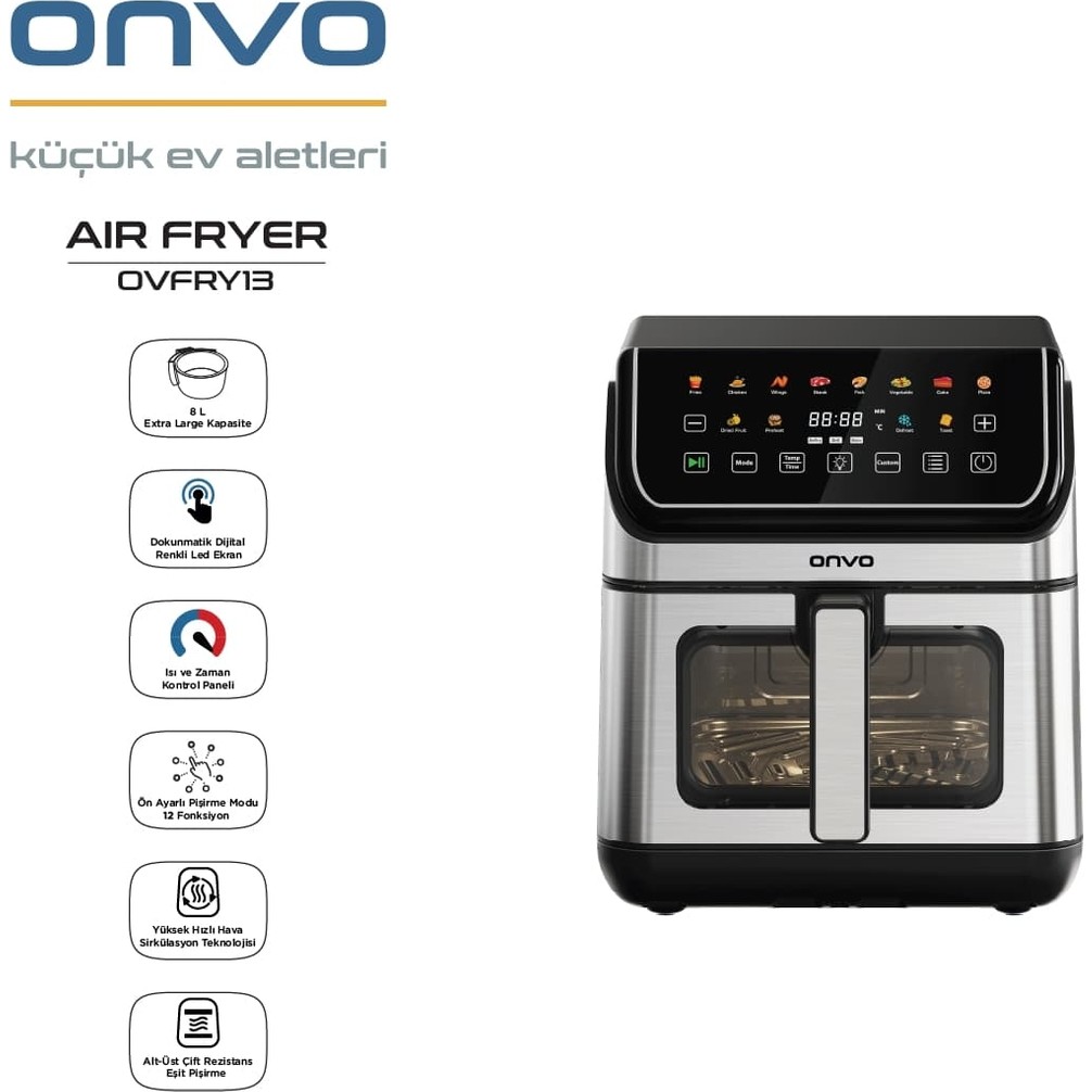 Onvo OVFRY13 8l Alt-Üst Çift Rezistanslı Seramik Kaplama Desenli Airfryer
