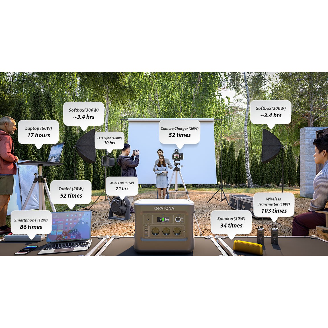 Patona 9989 Platinum Taşınabilir Güç İstasyonu 1000WH 1000W/230V USB5V/2.4A DC12V/10A 24FİLM