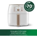Philips Airfryer XXL HD9870/20 Premium 7.3 lt Yağsız Fritöz, sağlıklı yemek pişirmek için ideal bir seçenektir. 7.3 litrelik geniş kapasitesi sayesinde büyük miktarlarda yemek pişirebilirsiniz. Yağsız pişirme teknolojisi sayesinde yiyeceklerinizi kızartabilir, çıtır çıtır hale getirebilirsiniz. Ayrıca, dijital ekranı ve dokunmatik kontrolleri ile kullanımı oldukça kolaydır. Farklı pişirme programları ve sıcaklık ayarları ile istediğiniz sonucu elde edebilirsiniz. Sağlam ve dayanıklı yapısı ile uzun ömürlü bir üründür. Philips Airfryer XXL HD9870/20 Premium 7.3 lt Yağsız Fritöz, mutfakta pratik ve sağlıklı yemekler yapmak isteyenler için harika bir seçenektir.
