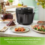Bu All in One Cooker, kullanımı kolay dokunmatik kontrollerle donatılmıştır ve farklı yemekler için önceden programlanmış ayarlar sunar. Ayrıca, 24 saatlik programlanabilir bir zamanlayıcıya sahiptir, böylece yemeğinizi istediğiniz zamanda hazırlayabilirsiniz.