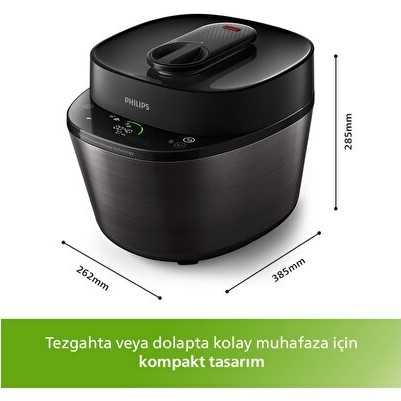 Philips HD2151/62 All in One Cooker, çok yönlü bir mutfak aletidir. Bu ürün, yemek pişirmek için farklı fonksiyonlara sahip bir tencere olarak kullanılabilir. Basınçlı pişirme, yavaş pişirme, buharda pişirme, kızartma, ızgara ve daha birçok işlemi tek bir cihazda gerçekleştirebilirsiniz.
