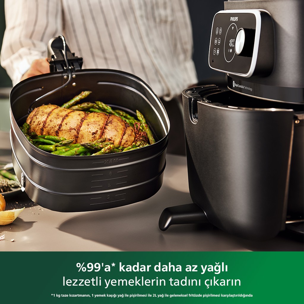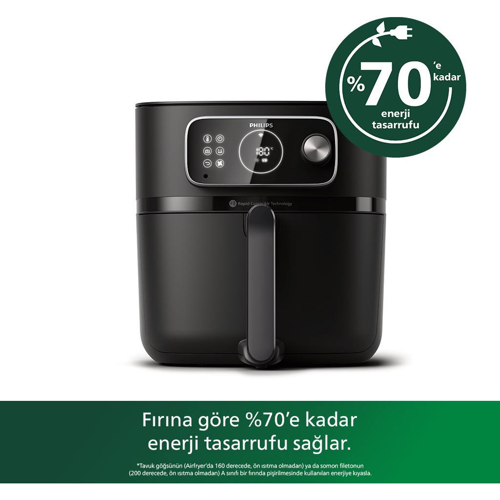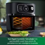 Tefal vardı bunu alınca onu yazlığa görüreceğim. Yanyana resimlerini ekledim. İçi çok büyük değil sepetin etrafı boş olunca sepet küçük olıyor ama yanlardaki boşluklardan hava dolaşımı daha iyi olduduğu için daha hızla pişiriyor. Ekranı ve kendi şık. Fiyat da makul.