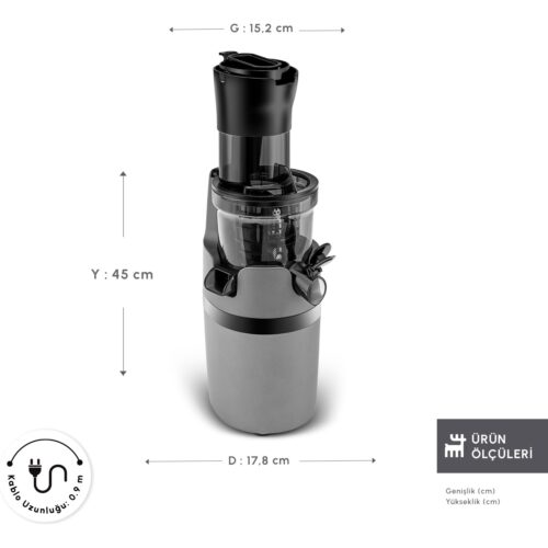 Hoş bir makine. Çok kolay temizlenir dense de 1 elma bile sıksanız 5 6 parçası birden kirleniyor hepsini alıp yıkamanız lazım. Plastik parçaları sadece suya tutsanız da yetiyor ama metal rendesi ve süzgeci elde yıkamayla çok uğraştırır. Birkaç kullanımda bir makineye atmak lazım. Yanlardan makineyi tutan kollar ve aşağıdaki menteşeleri tamamen plastik ve çok kolay kırılabilir. En uyuz olduğum şey bu plastik kollar. Umarım kırılmaz. Çıkan içecek de pütürlü oluyor bir daha süzmek lazım.