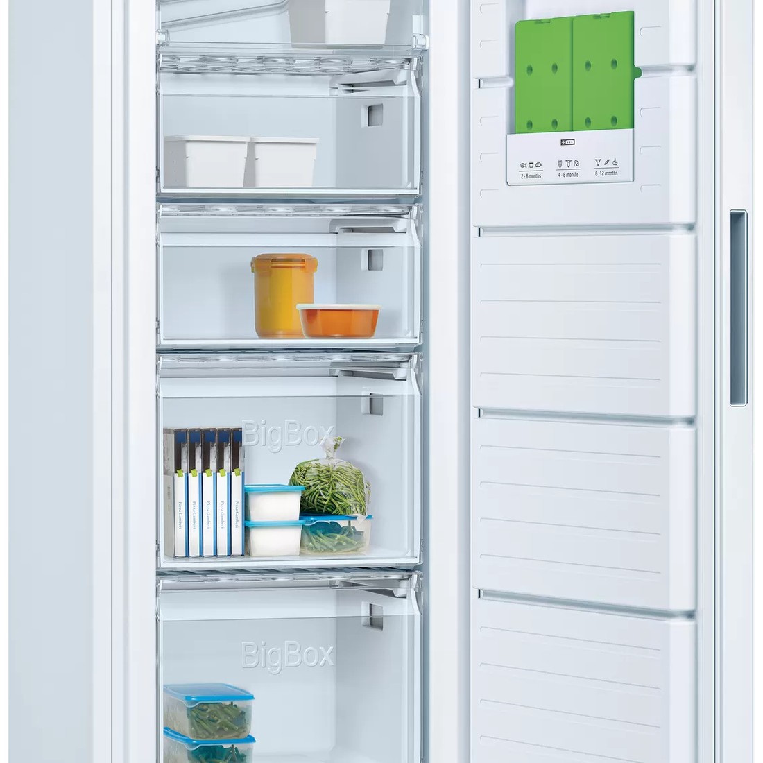 1 adedi büyük olmak üzere, 5 adet şeffaf derin dondurucu çekmecesi