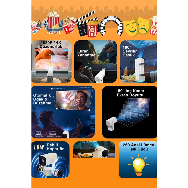 “Projeksiyon Cihazı 200 Lümen 2 Kol Hediyeli 4K 1080P Hd Projektor 3D Oyun Keyfi Android” için yorum yapan ilk kişi siz olun Yanıtı iptal et