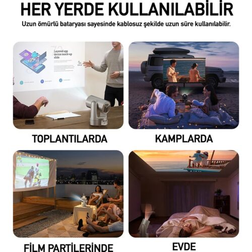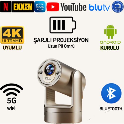 Robeve Full Hd 1080P Şarjlı Projeksiyon Cihazı – Dev Ekran, Wifi Bağlantılı, Hazır Android Kurulu, Hdmı/usb Girişli, Ev Sinema Sistemi Taşınabilir Projektör Sinema Sistemi Şarjlı Projeksiyon Cihazı