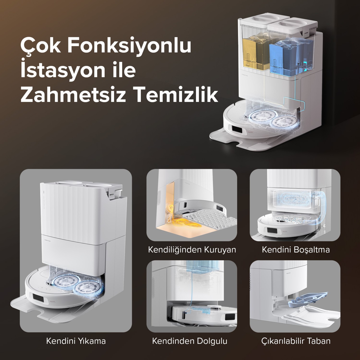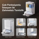 Yaklaşık 2.5 aydır robotu kullanıyorum. Uzun araştırmalarım sonucunda bu ürün ve bir üst modeli maxV arasında kalmıştım. MaxV nin artı yönleri fırça ve mopların yana açılması ile yapay zeka kullanılması iken eksi yönleri fiyatı ve kameralı olması idi. Ben de qrevo s modelini aldım. Haritalandırması hızlı ve güzel. Temiz su tankını dolduruyorum geri kalan hiçbir şeye karışmıyorum. Moplarını yıkama süresini 10 dakikaya ayarladım 10 dakikada bir moplarını yıkayıp temizliğe devam ediyor. Toz haznesi dolunca da kendisi gidip boşaltıyor. Halı tanıma özelliği sayesinde Halılara gelince moplarını kaldırıyor. Temizlik bitince de toz haznesini boşaltıp moplarını yıkayıp kurutmaya alıyor. Uygulama üzerinden her şeyi ayarlanabiliyor. 2.5 aydır kullanıyorum daha toz torbasını değiştirmedim. Ayrıca iki kutuda özenle paketlenmişti. Kutu içinden 1 tane de yedek toz torbası çıkıyor. Eski robotumda sürekli bi yerlere çarpma ve harita silme sıkıntısı vardı ama bunda hiç öyle bir sıkıntı yaşamadım. Ben bu üründen çok memnun kaldım kesinlikle düşünen herkese tavsiye ederim.