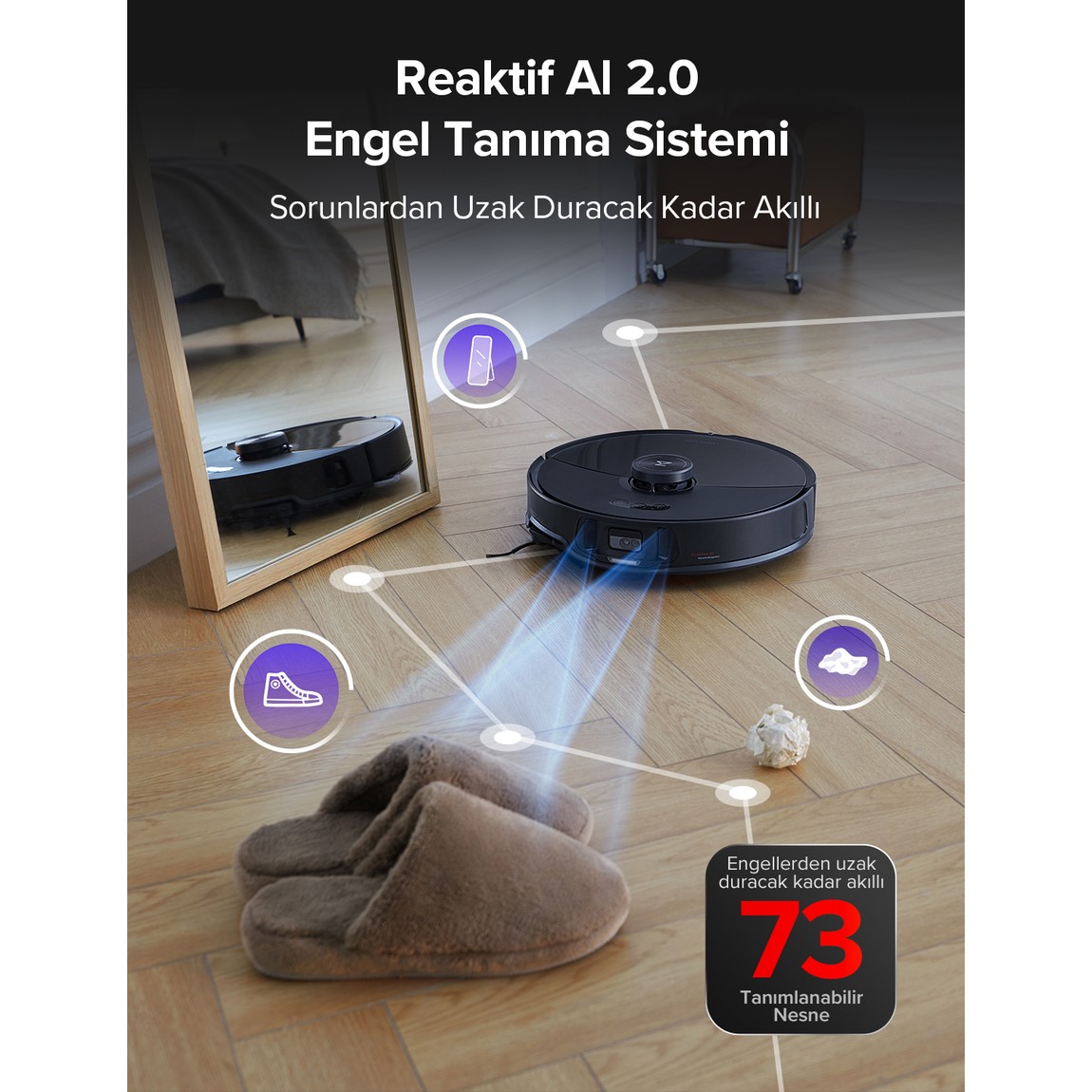 Roborock S8 MaxV Ultra Akıllı Robot Süpürge Siyah, evinizin zeminlerini temizlemek için tasarlanmış yüksek performanslı bir robot süpürgedir. 2500 Pa’ya kadar emiş gücüne sahip olan bu robot süpürge, halılarınızı ve sert zeminleri derinlemesine temizler. 5200 mAh bataryası sayesinde uzun süreli kullanım imkanı sunar ve akıllı harita oluşturma özelliği sayesinde evinizin her köşesini hatırlar ve en etkili temizlik rotasını belirler. Ayrıca Amazon Alexa ve Google Assistant gibi sesli asistanlarla entegre çalışabilir ve kolayca kontrol edilebilir. Şık siyah tasarımıyla da evinizin dekorasyonuna uyum sağlar.