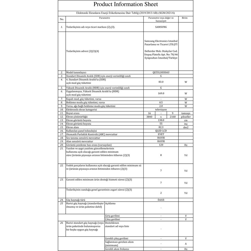 Samsung 55LS03D 55″ 139 Ekran Dahili Uydu Alıcılı 4K Ultra HD Smart QLED TV için 4 değerlendirme