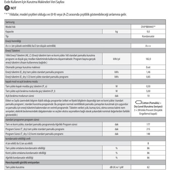Samsung DV90BB9445GHAH 9 kg A Bespoke Çamaşır Kurutma Makinesi, DIT Motor, Quick Drive ve AI Kurutma özelliklerine sahiptir. DIT Motor sayesinde sessiz ve enerji verimli bir şekilde çalışır. Quick Drive teknolojisi ile çamaşırlarınızı daha hızlı kuruturken enerji tasarrufu sağlar. Ayrıca AI Kurutma özelliği sayesinde çamaşırlarınızın kuruluk seviyesini otomatik olarak ayarlayarak daha etkili bir kurutma sağlar. Bu ürün, kullanıcı dostu özellikleri ve yüksek performansıyla evinizdeki çamaşırlarınızı hızlı ve kolay bir şekilde kurutmanıza yardımcı olur.