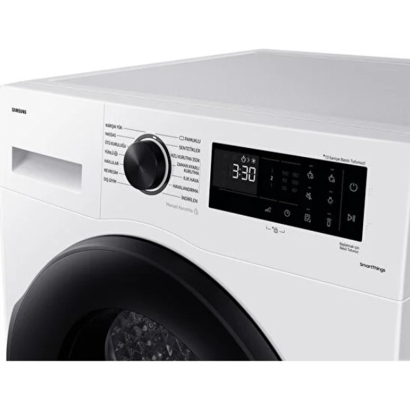 Samsung DV90CGC0A0AEAH 9 kg A++ Çamaşır Kurutma Makinesi, evinizdeki çamaşır bakımını bir üst seviyeye taşıyor. Gelişmiş ısı pompalı kurutma teknolojisi ile enerji tasarrufu sağlarken, çamaşırlarınızı nazikçe kurutur. 9 kg kapasitesi sayesinde geniş aileler için ideal bir çözüm sunar. Wi-Fi bağlantısı ile uzaktan kontrol edebilir, çamaşır kurutma işlemini istediğiniz yerden yönetebilirsiniz. Beyaz rengi ve şık tasarımıyla her türlü dekorasyona uyum sağlar. Dijital kontrol paneli, kullanımı son derece kolaylaştırır ve size zaman kazandırır.