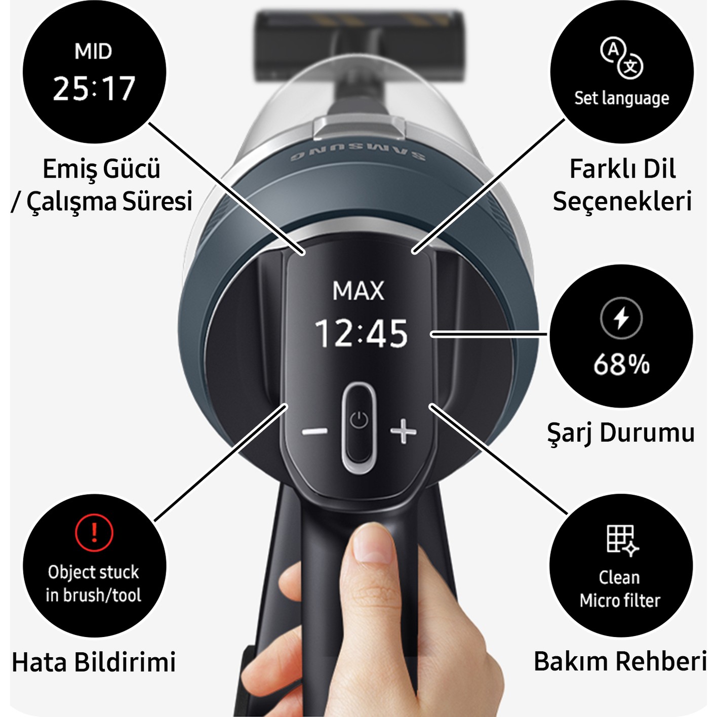 Samsung VS20C8524TB/TR Jet 85 Şarjlı Dikey Süpürge, 210W Emiş Gücü, Dijital Invertör Motor