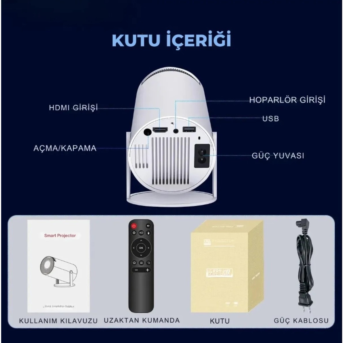 Turco HY300 Pro Smart Iptv ve Oyun Konsol Uyumlu Kablosuz Projeksiyon Cihazı