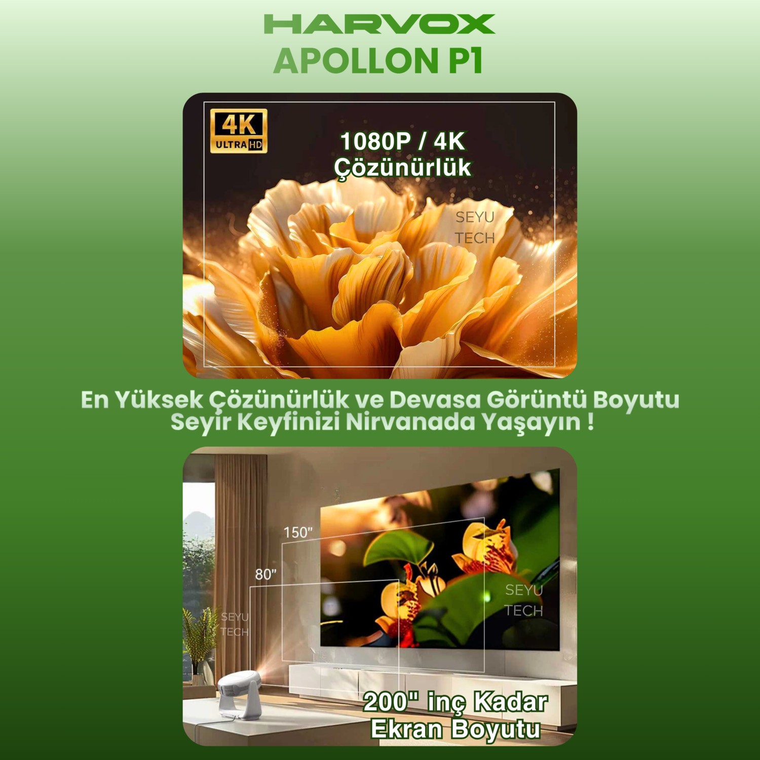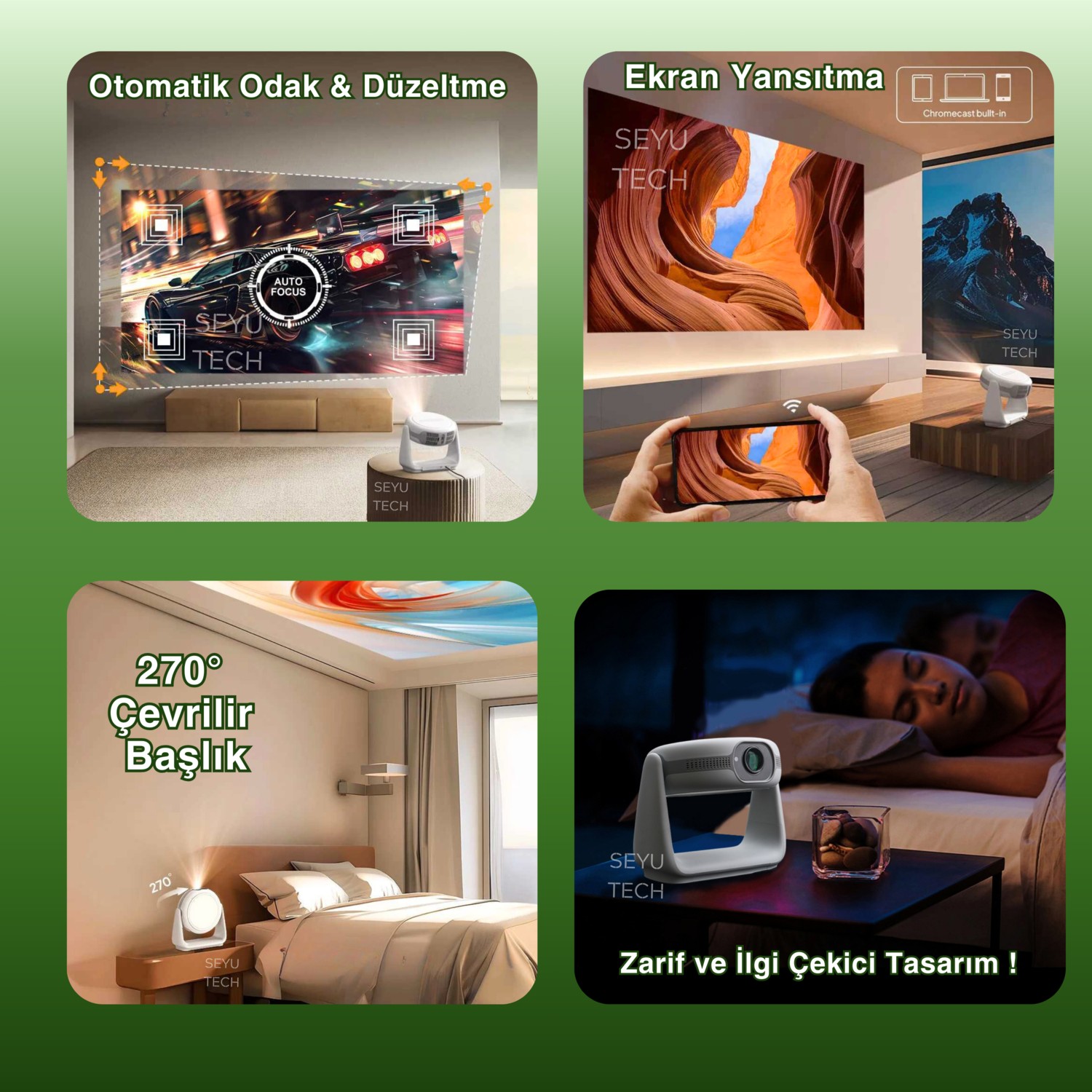 Seyutech Taşınabilir Powerbankli 4K Destekli 1080P Android Sistemli Sinema Projeksiyon Cihazı