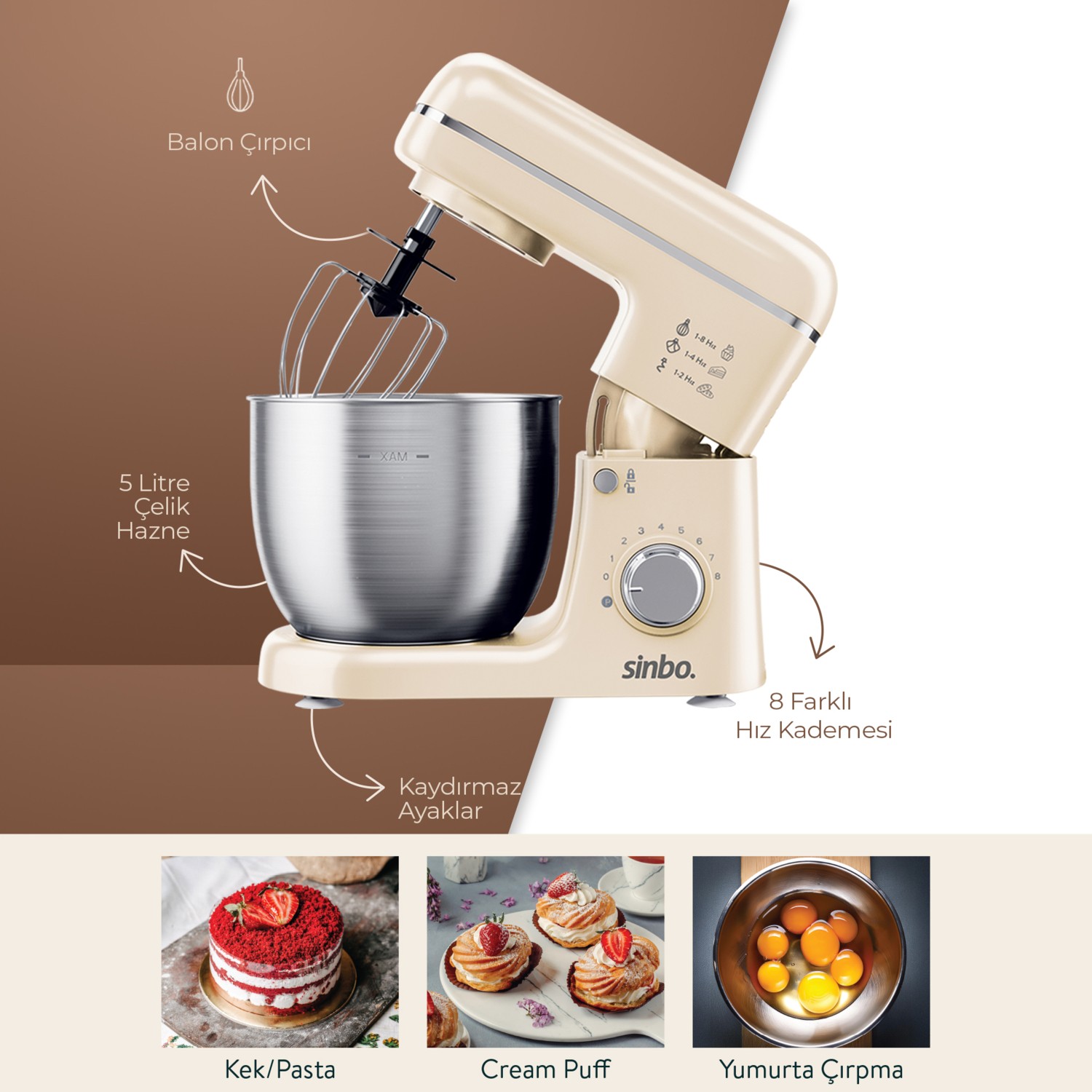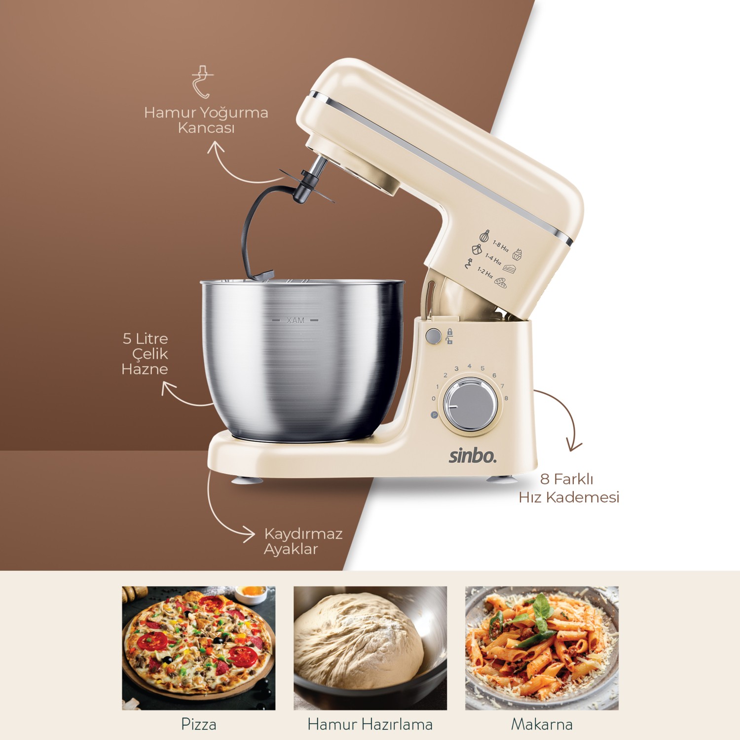 Sinbo SMX-2771 Stand Mikser | 1300W, 5l, Çok Fonksiyonlu Stand Mikser – Mutfak Şefi