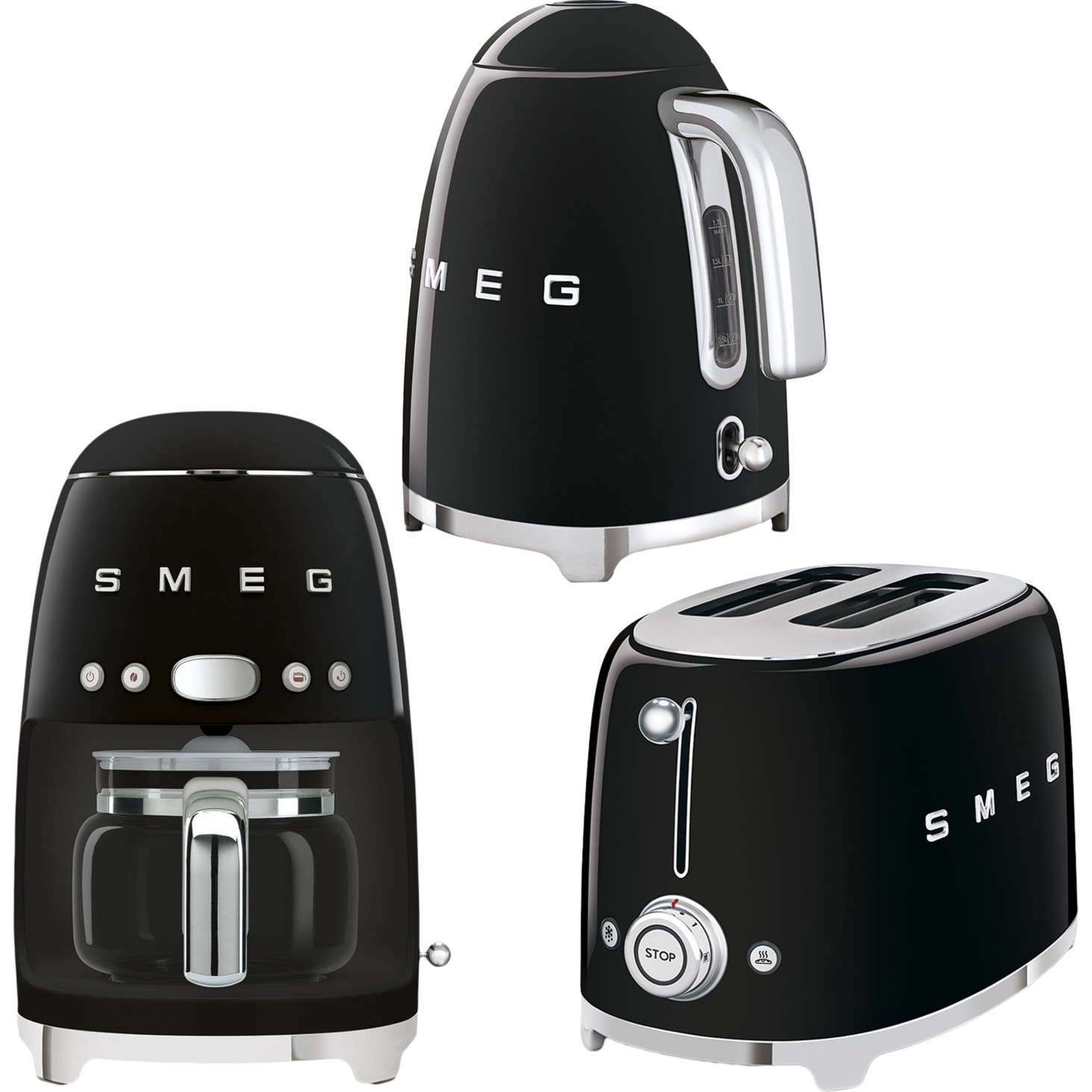 Smeg 50’s Style Siyah Kettle – 1×2 Ekmek Kızartma Makinesi ve Filtre Kahve Makine Seti