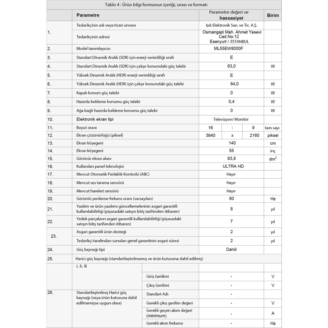 Strong ML55EW8000F 55’’ 140 Ekran Uydu Alıcılı 4K Ultra HD DLED TV