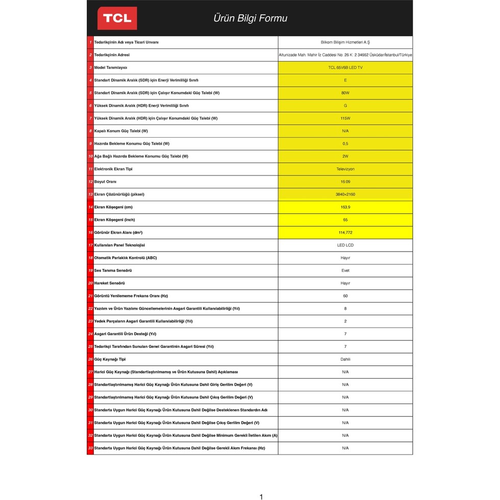 TCL 65V6BGTV 65″ 165 Ekran Dahili Uydu Alıcılı 4K Ultra HD Smart LED TV için 4 değerlendirme