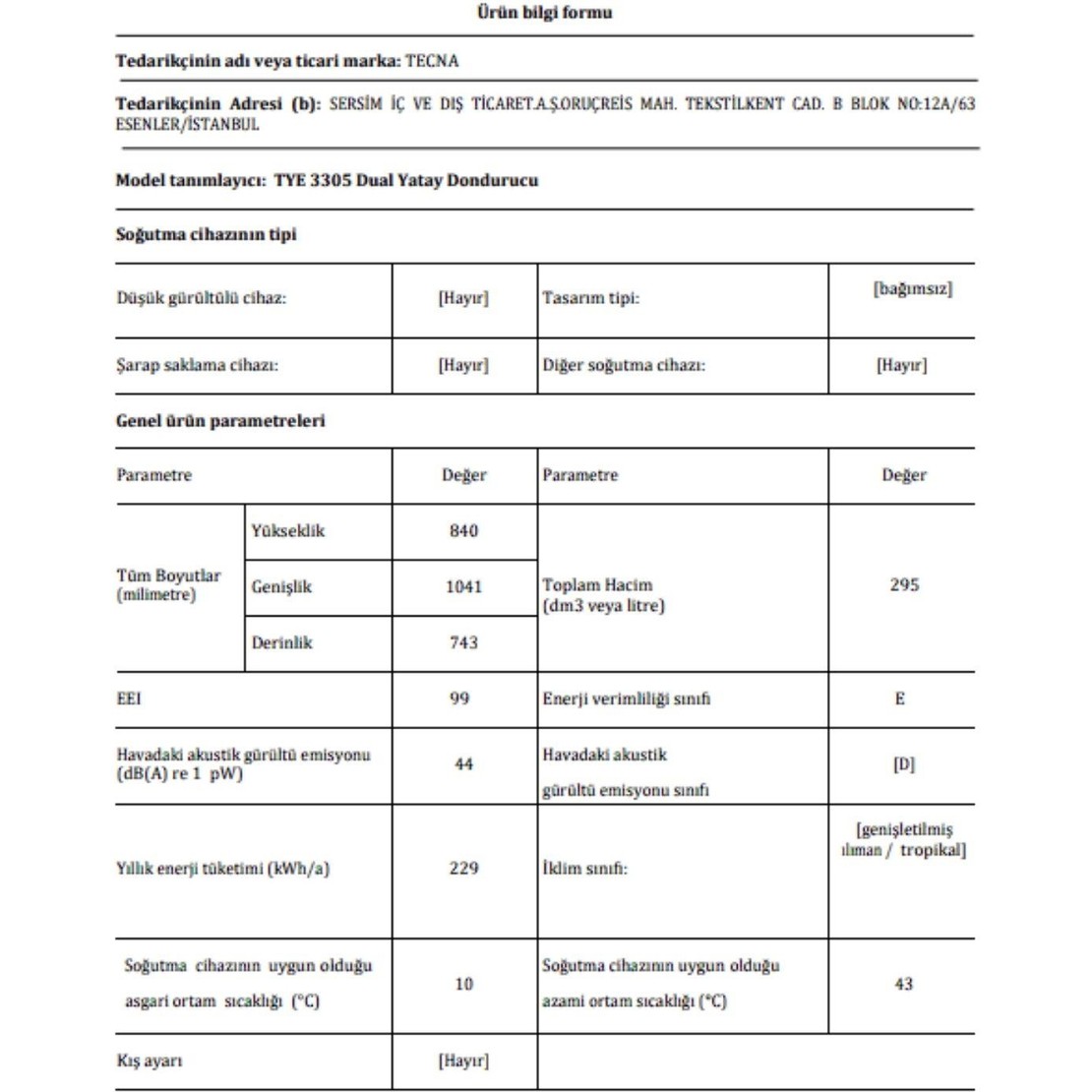 Tecna CF3320 Tye 3305 Dual Yatay Derin Dondurucu 305 L