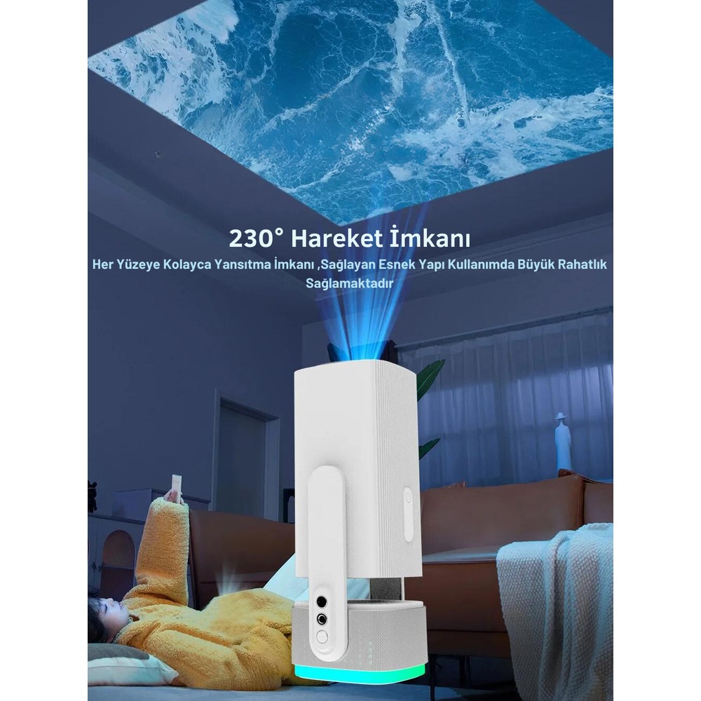 Tekno Drone Powerbanklı Android Taşınabilir Projeksiyon Wifi ve 4K Destekli Rgb LED Akıllı Sinema Projektör