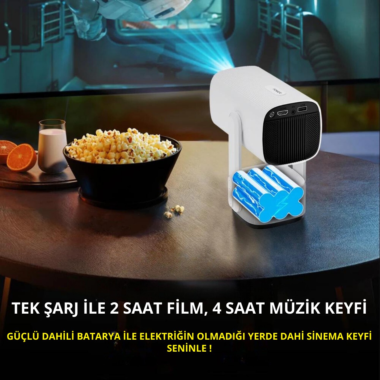 Heaven House Şarjlı Projeksiyon | Kendinden Şarjlı Projeksiyon Cihazı | Şarjlı Mini Projeksiyon | LED Projektör