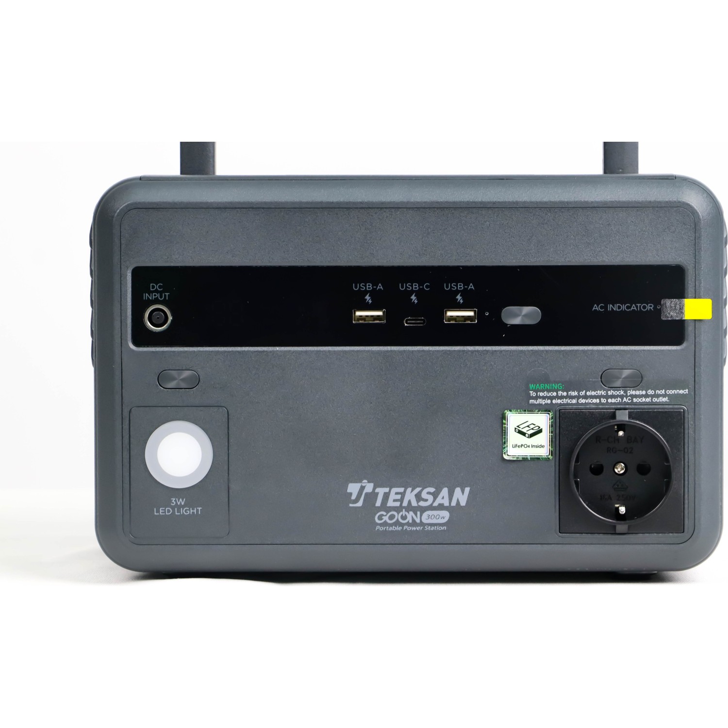 Teksan GO ON 300W Taşınabilir Güç İstasyonu, Güneş Paneliyle Şarj Desteği, Hafif, LiFePO4, LED