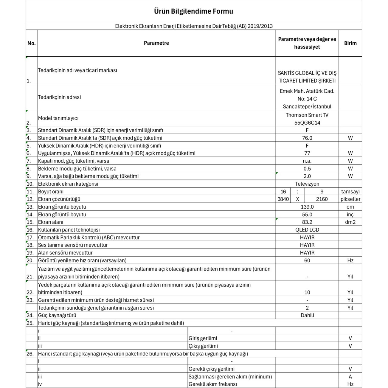 | Garanti Süresi (Ay) | |