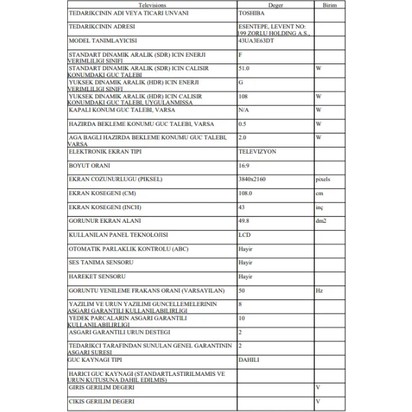 “Toshiba 43UA3E63DT 43″ 108 Ekran Uydu Alıcılı 4K Ultra HD Android LED TV” için yorum yapan ilk kişi siz olun Yanıtı iptal et