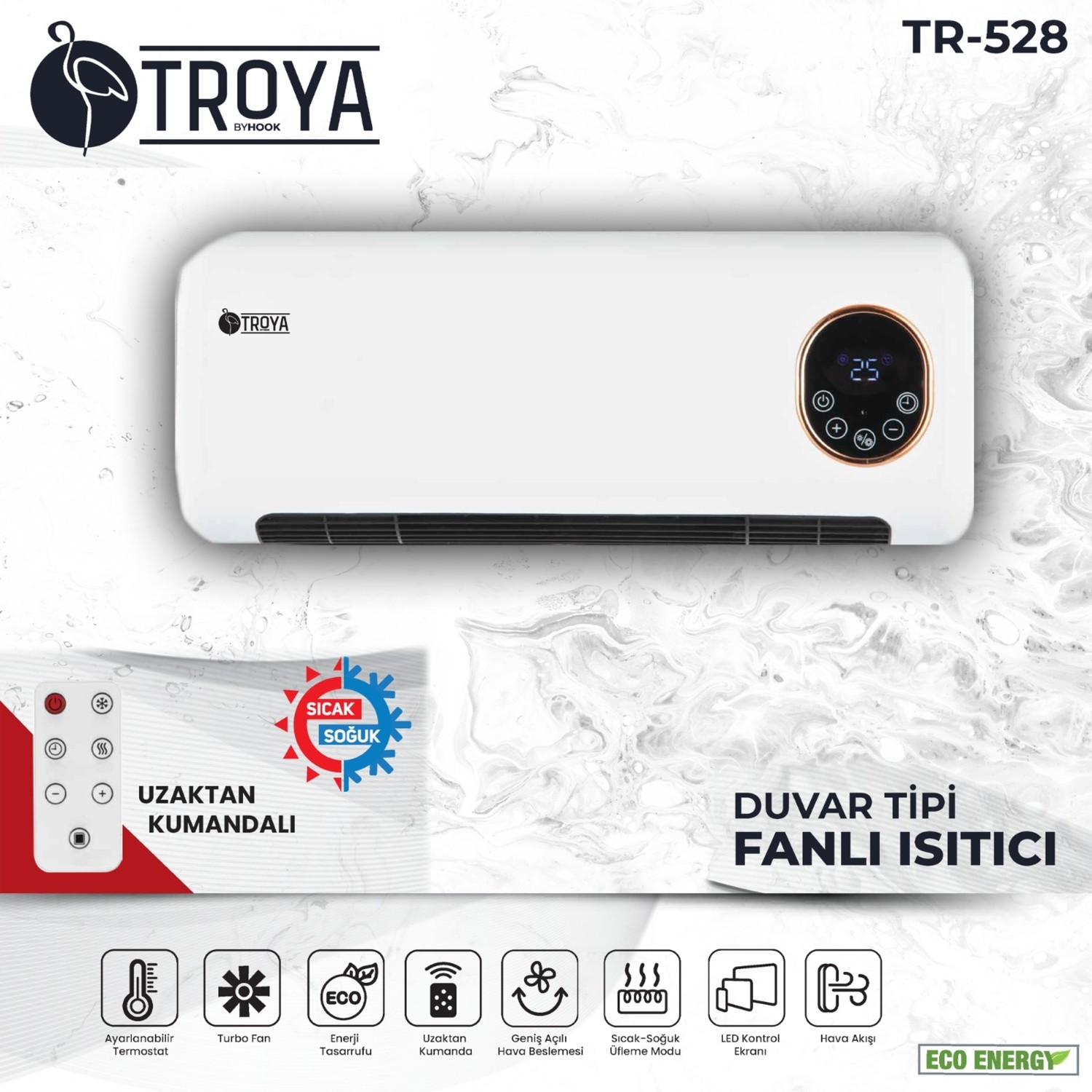Troya By Hook TR-528 Uzaktan Kumandalı Duvar Tipi Fanlı Isıtıcı