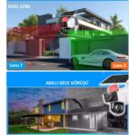 Enshall 4mp 4K Ultra Hd Gece Görüşlü Çift Lensli Hareket Takipli Alarmlı Dış Mekan Ip Güvenlik Kamerası