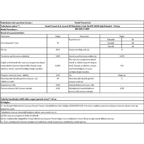 Vestel BM 4212 X WIFI Bulaşık Makinesi