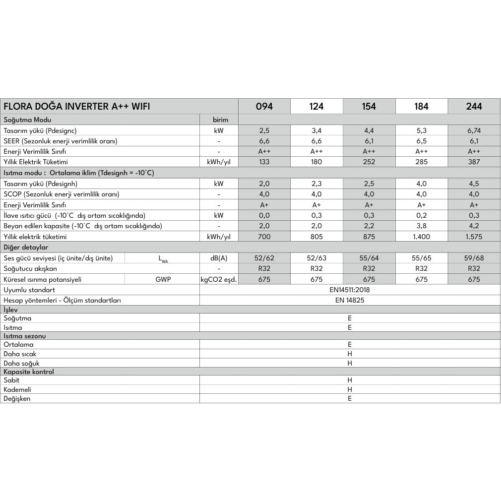 Vestel Flora Doğa 124 A++ Wifi 12000 BTU Inverter Duvar Tipi Klima