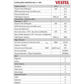 Vestel Flora Doğa Inverter 186 A++ WIFI Klima