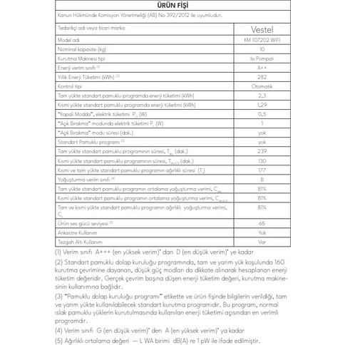 Vestel Km 107202 Wifi 10 kg Kurutma Makinesi için 6 değerlendirme