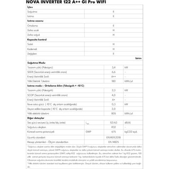 Vestel Nova 122 GI PRO A++ 12000 BTU Wifi Inverter Duvar Tipi Klima
