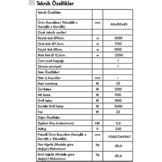 • Göz Sayısı ve Tipi7 Gözü Gazlı (1 Gözü Wok’lu)