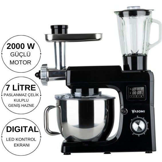 Yasomi Sm 1511BML LED Ekranlı Kıyma Çekme Aparatlı Blender 7 Litre Stand Mikser Mutfak Şefi